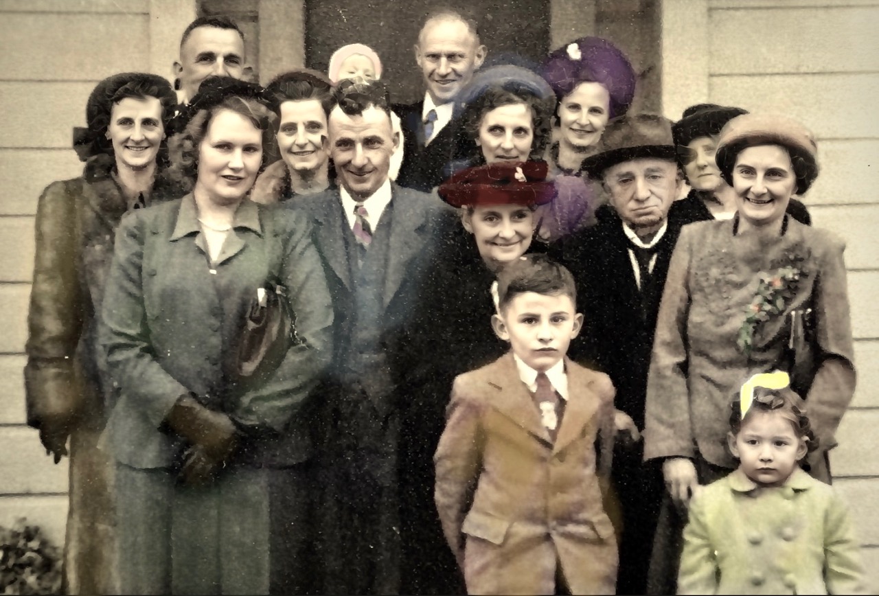 Hotel, and got a job there as housemaid and assistant cook.4. Twenty-four Paterson StreetIn 1937, May’s father died prematurely (depression and alcohol) and there were no jobs for the girls at Omahina. The family took out a mortgage on a farmlet on the edge of Wanganui, at 24 Paterson Street, Aramoho. To pay for it, 29-year-old May got a job in Wanganui, then in 1940 as a cook 2 km away at the Jubilee Home, a geriatric hospital, while 21-year-old Johnny, my mother’s twin, remained in the Waverley district as a farmhand, 27-year-old Kitty was nursing at Palmerston North Hospital, 18-year-old Sheila lived at Paterson Street, and walked half a kilometre to Somme Parade to catch the tram to town to J. J. McKaskie’s oilskin raincoat factory on Taupo Quay, and 29-year-old Eileen was working at the Mangamahu Hotel.May soon became the chief cook at Jubilee, biking to and from work every day until she retired in 1974. A wicker basket in front of her bike’s handle-bars carried home scraps of meat, and all the neighbourhood cats gathered by the green mailbox at quarter past five, Wednesday to Sunday, waiting to be fed. When war broke out in 1939, Johnny was conscripted and sent to Egypt as an infantryman, fighting in the front lines for 5 years, driving back the Germans all the way from Suez to Tobruk, then across the Mediterranean to Italy, to Monte Cassino, and to the River Po. He was often sent out at night with just a couple of others to patrol no-mans-land, was wounded three times, the last time suffering ‘shell-shock’ (post-traumatic stress disorder) and was hospitalised for many months after the war ended. 5. The Mangamahu HotelWhen my very pretty 22-year-old mother, Molly, went to visit Eileen at Mangamahu in the late 1930s, Maggie’s son Dave, who was driving one of his dad’s trucks, fell in love with her. Before long they were married, and I was born in 1941.![]() Dad was conscripted not long afterwards and sent to guard Fiji from Japanese attack. He did not come home again until 1945, and my war-time pre-school years were spent between the kitchen and back yard of the hotel and the house and garden of Paterson St. My early memories in the kitchen of the Mangamahu hotel were Gran’ma and Aunty Eileen cooking and cleaning for the guests, mostly Mrs Tansy (Teacher Tan) and council roadman Frank Purcell ('Uncle Frank'). Grandad tended the bar, grew all our veges in a big garden behind the hotel, ran a small farm which for obvious reasons was called Snake Gully (although Soho was stencilled on the wool bales), killed a hogget every week for meat, and managed the hotel’s three truck-drivers. Back in 1919 he had bought a small solid-tyred, chain-driven truck to bring out barrels of beer. It was soon taking back bales of wool, requiring another truck, then another…. At Paterson Street, Aunty May spoilt me rotten. She was such a good cook, and she played songs on the piano for me, showed me her prized roses and picked cherry-plums for me. Not long after WW2 ended, Maggie Archer, my Gran’ma died, and my grandad sold the hotel so he could retire to his farm at Soho, spending most of his 60s and 70s cutting scrub, growing veggies, sending out invoices for the farm transport work, and tending his sheep. The new young school teacher, Barbara McGlade, was boarding at the hotel, so mum and dad rented the school house and we lived there from about 1947 to 1950. My Nana, Mary Ann Smyth, died in her sleep at Paterson St in 1950, and was buried beside her husband in Waverley Cemetery. Then Sheila married Ray Bourke, a farmer at Rangiwahia, and Johnny married Mary Crawshaw, his old Waverley sweetheart. ![]() Mary and Johnny's wedding ![]() 6. The house at 24 Paterson StreetEileen and Kitty joined May and my Nana’s brother at Paterson St. It was a small 2-bedroom house. In one bedroom was John White, Uncle “Major” (he dressed very formally) now very old, while in other bedroom Eileen and May slept in the double bed, and Kitty slept in Nana Mary Ann’s single bed.There was a tiny kitchen with a coal range, a gas oven, and a table where they ate most meals, next to a dining room/living room with an open fire, three comfy old armchairs, and an elegant matching sideboard, table and chairs, reminders of their well-off 1920s dairy farm days. Most evenings were spent around the fire in there. Each evening Aunty May would carefully fetch one of the apples from the boxes under the tank-stand, cut it into quarters, remove the core and share it around. Then she would make us all a cup of tea with a home-baked biscuit on each saucer. At eight-o-clock we all knelt down to say the Rosary and three Hail Marys for Blessed Oliver Plunket. The only time the formal dining table was used was on Christmas Day and Easter Sunday. For Christmas and Easter, the dining room was decorated with spiraling crepe paper streamers radiating from the central light fitting, and everyone turned up at Paterson St to squeeze up around the table for a traditional British Christmas dinner, including Aunty Eileen’s freshly dug new potatoes and freshly picked new season’s peas, May’s plum pudding with thruppences and a thimble, topped with fresh cream from their cows, and her Christmas cake with about a kilo of dried fruit, a dozen eggs from her chooks and about centimetre of icing: almond icing underneath and elaborately decorated white icing on top. Easter Sunday was similar. At the rear of the house was a washhouse with a gas-heated copper and two concrete tubs with a hand-turned wringer between them. Outside the back door, a corrugated-iron water tank stood on a tank-stand with boxes of last autumn's apples stored underneath it, the outside flush lavatory next to it and the wood-shed/bike-shed opposite. In the shade beyond the shed was the meat-safe for keeping meat, butter and milk fresh. Beyond that was a dugout from 1943 Japanese bomb-scare days. There was also a formal sitting room with a fancy fireplace, fl