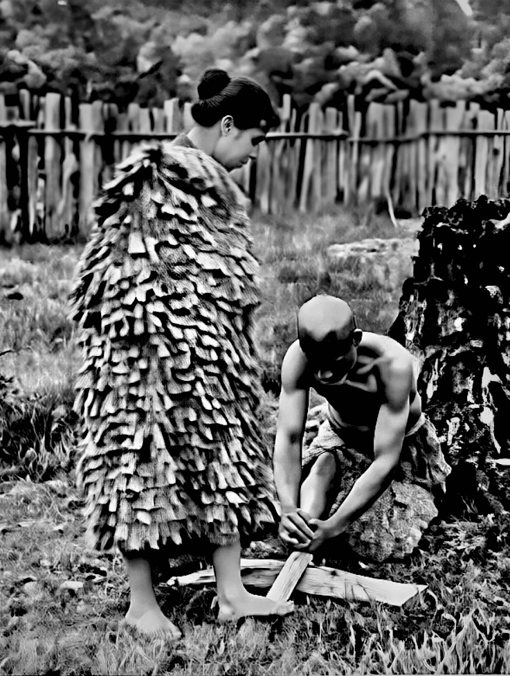 fire-making. By rubbing a pointed stick of kaikomako rapidly in a