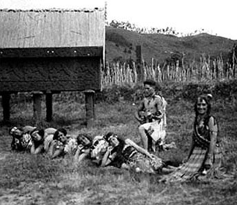 1926 Piano ScoreYou will find several spelling errors in the Maori lyrics printed on this 1926 piano score, and capital letters have been used at random. But its English verses are closer to the Maori in meaning. Used in a 1950s medleyIn more recent times, the first verse of Hoia Ra has be used in performances dramatising the coming of the Maori from Hawaiki (Eastern Polynesia, near Tahiti) to New Zealand.